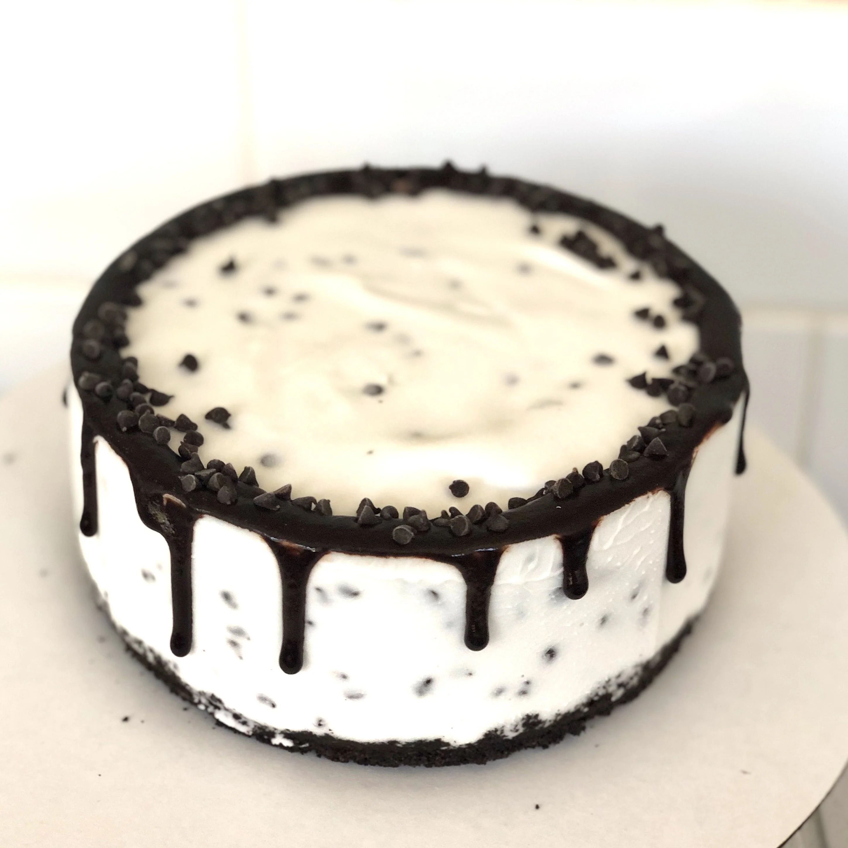 Cakes come with an Oreo cookie base. If you wish a gluten-free cake, select gluten-free to order a cake without a cookie base.